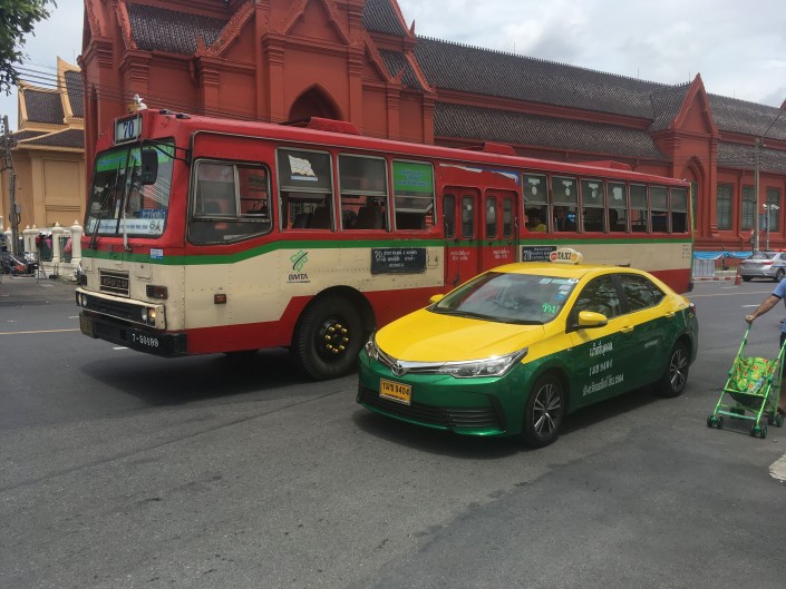 Поездка на тук-туке дешевле - от 3 долларов в одну сторону. Тук-тук очень мобилен - проедет там, где не сможет автобус или такси. Но в нем нет кондиционера и во время езды приходится дышать загазованным городским воздухом.