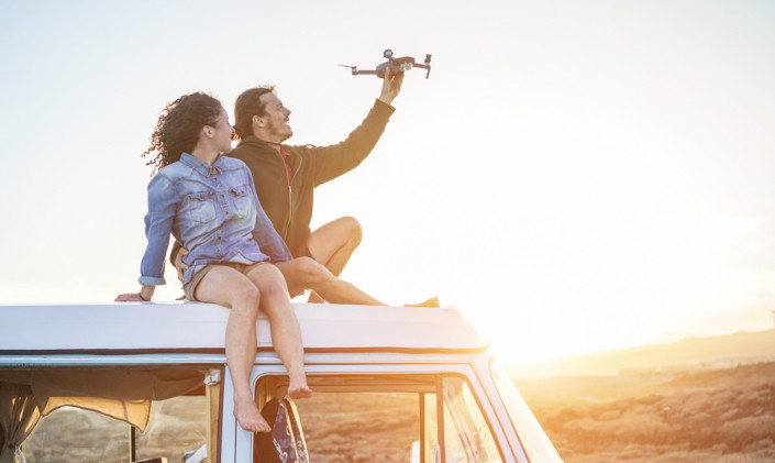 Путешествуйте как минимум вдвоем. Партнер поможет настроить дрон, проследить за ветром, а также он сделает для вас интересные кадры, и вам не придется позировать с пультом в руках.