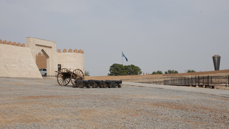 Нам удалось попасть на территорию городища аккурат после визита Нурсултана Назарбаева, который приехал осмотреть уровень подготовки. Обещают сдать до 31 декабря 2020 года.