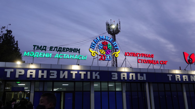 "Шымкент 2020 Культурная столица СНГ" - такая вывеска на фасаде аэропорта встречает прилетевших.