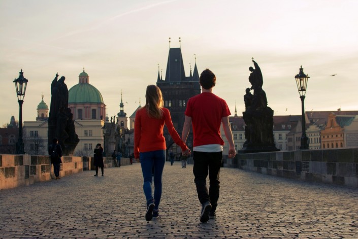 Прага, Чехия.  Этот город буквально пропитан атмосферой романтики: старинные замки и соборы, уютные рестораны и кофейни, легенды и любовные истории минувших лет. А тесные переулки старого города просто созданы для прогулок влюбленных. Один из самых известных мостов города - Карлов мост - называют мостом поцелуев. Чехи верят, что если на этом мосту загадать желание, приложив ладонь к изображению святого Яна Непомуцкого, то оно обязательно сбудется.