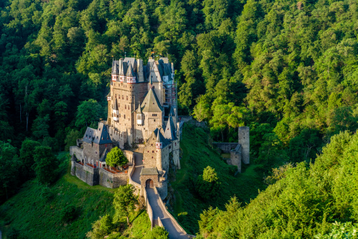 Эльц. Еще один красивый и знаменитый замок Германии, расположенный в земле Рейнланд-Пфальц близ Виршема в долине реки Эльцбах. Здесь с XIII века проживают представители знатного рода Эльц - на протяжении девяти веков замком владели 33 поколения этого рода. За всю историю своего существования замок ни разу не разрушался, не был разграблен или поврежден во время войн.