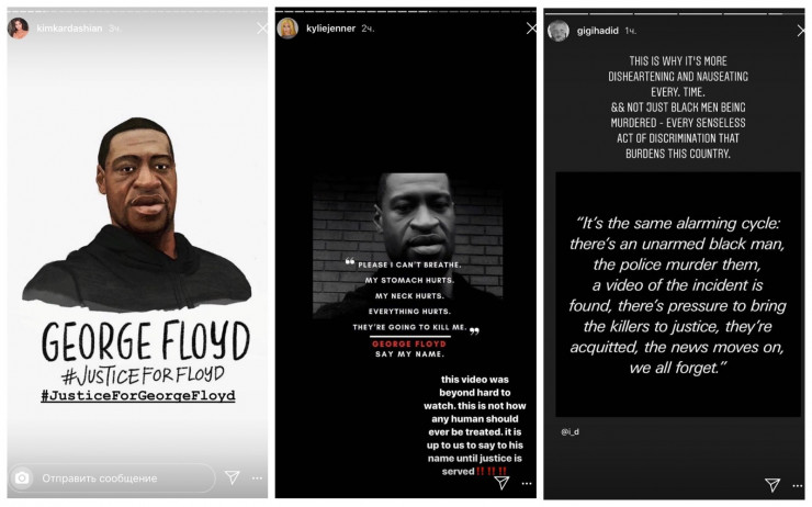 К акции протеста в социальных сетях присоединились известные деятели культуры, звезды музыки, кино и спорта. Ким Кардашьян, Кайли Дженнер, Джиджи Хадид, Дебра Мессинг, Наоми Кэмбэлл, Ева Лонгория и другие знаменитости опубликовали на своих страницах в Instagram фотографию погибшего с требованием правосудия в отношении всех, кто причастен к убийству Джорджа Флойда.