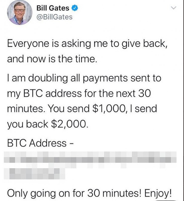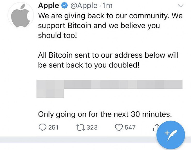 Злоумышленник взломал и профили, принадлежащие Apple и Uber. Собрав все скомпрометированные учетные записи, Кларк начал публиковать от их имени уже известную мошенническую схему, в которой пользователям обещают удвоить их сбережения в цифровой валюте.