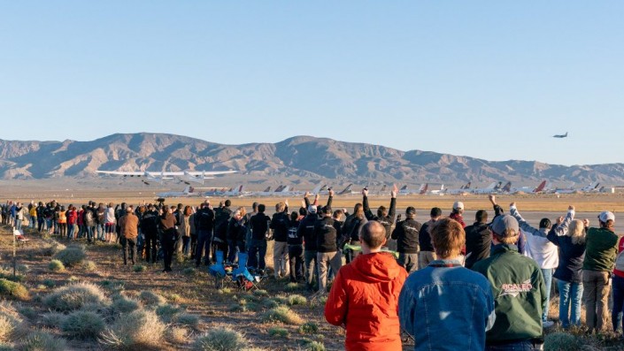 Двухфюзеляжная новинка от компании Stratolaunch Systems провела в воздухе 2,5 часа и развила максимальную скорость 304 километра в час. Размах крыла гиганта составляет 117 метров, это больше, чем у прошлого рекордсмена - советского Ан-225 "Мрия" (88 метров).