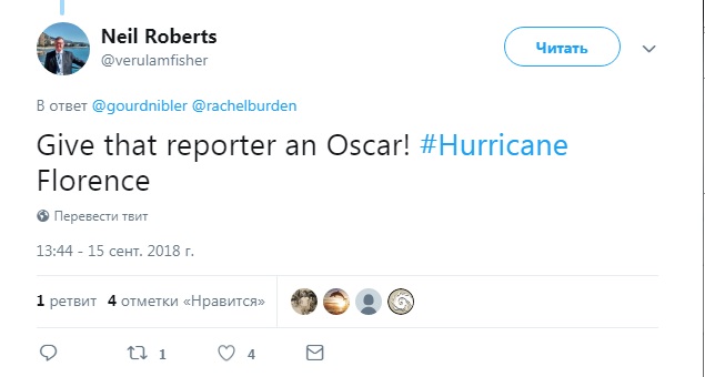 So dramatic! Dude from the weather channel bracing for his life, as 2 dudes just stroll past. #HurricaneFlorence pic.twitter.com/8FRyM4NLbL