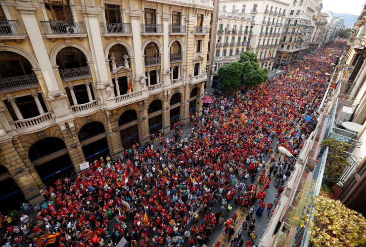 В испанском регионе Каталония на митинги за независимость вышли более 100 тысяч человек, передает Tengrinews.kz со ссылкой на Reuters.