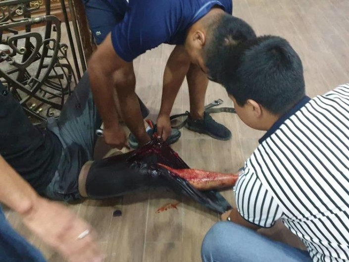 Кадрлардан қабырғадағы қан іздерін, бронжилет киген адамдарды, тастар мен патрондарды көруге болады. Атамбаевтың жақтастары резеңке оқтан алған жарақаттарын көрсетті.