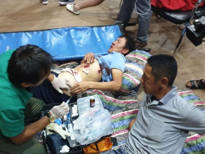 Басында атыс салдарынан 10 адам зардап шеккені хабарланған. Резеңке оқпен жараланғандардың арасында заңсыздыққа қарсы халық штабының бастығы Қияс Смалиев пен Жогорку Кенештің экс-депутаты Мирбек Мискенбаев бар екені жазылды. Сонымен қатар, портал тілшісі Аида Джумашова жарақат алған.