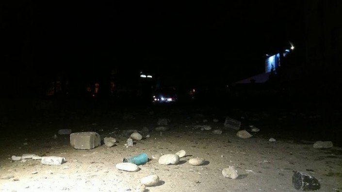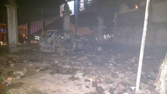Внутренний двор главного управления полиции Батуми, который митингующие забросали камнями, бутылками с зажигательной смесью и петардами. Фото Facebook Tato Tsetskhladze