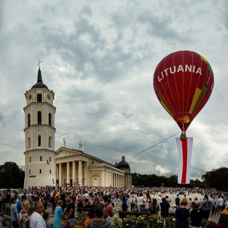 Над людьми летели десятки малых самолетов, по дороге ехала колонна мотоциклов, велосипедисты. С Кафедральной площади в Вильнюсе был поднят воздушный шар с 15-метровым национальным флагом Беларуси.