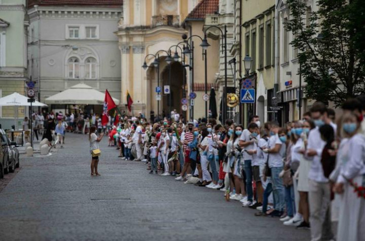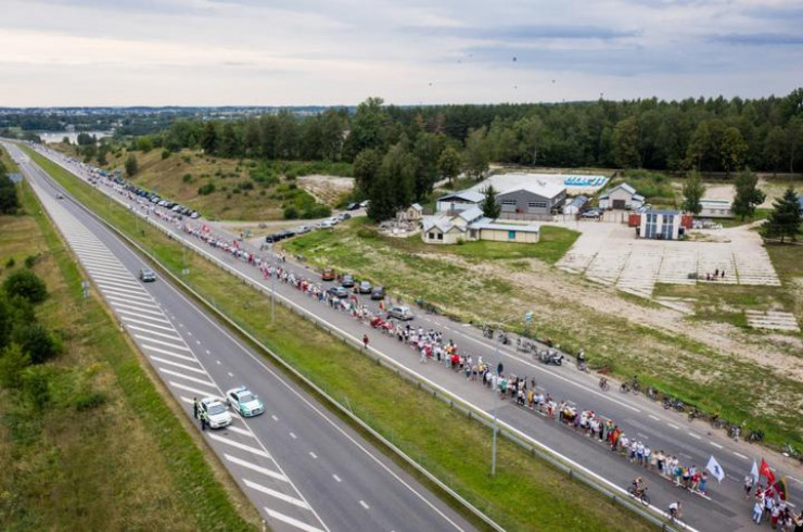 Вечером 23 августа около 50 тысяч жителей Литвы взялись за руки и образовали живую цепь от Вильнюса до населенного пункта Мядининкай на границе с Беларусью в знак поддержки протестующих в соседней стране. Прямую трансляцию с места событий вел портал DELFI, сообщает Tengrinews.kz.