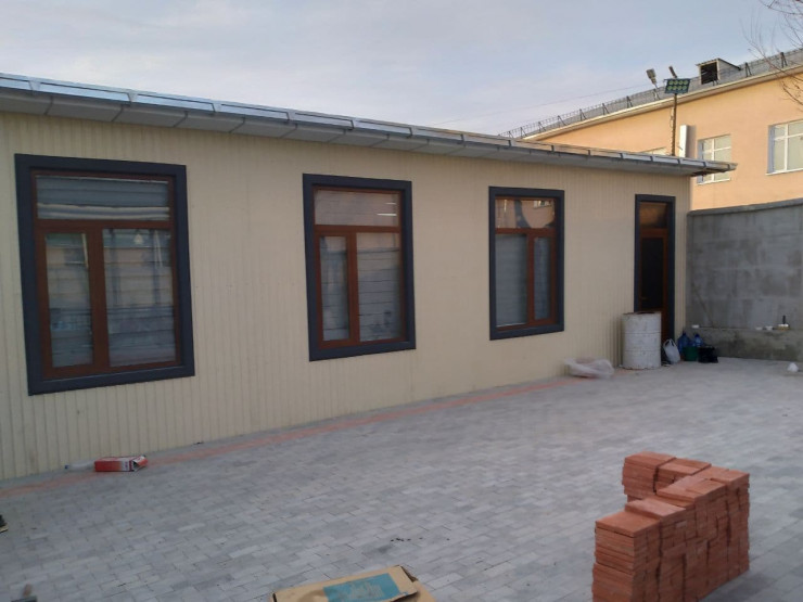 Первые снимки контейнера опубликовала газета "Халк сузи". Рядом с воротами висит баннер "Namangan viloyati hokimi uyi" (Дом хокима Наманганской области). Внутренний двор дома окружен небольшой стеной. При входе внутрь с левой стороны находится сам контейнер с тремя вырезами под окна и дверь, ведущая внутрь. Справа видно, как строители готовят беседку, огражденную забором. Строители также укладывают брусчатку. Здесь хоким планирует проводить прием жителей.