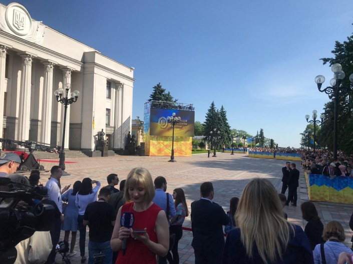 12.50 Журналисты и зрители готовятся к прибытию нового президента. По некоторым данным, Владимир Зеленский приедет на заседание на велосипеде. Мэр Киева Виталий Кличко уже прибыл на место на двухколесном транспорте.