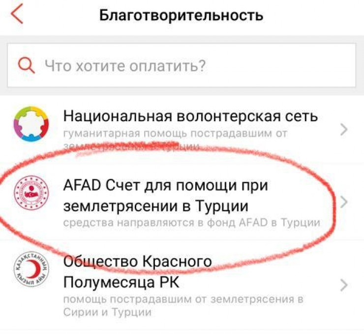 В посольстве Турции отметили, что деньги можно также перевести через приложение Kaspi.kz через фонд AFAD. Функцию можно найти в разделе "Платежи" - "Благотворительность".