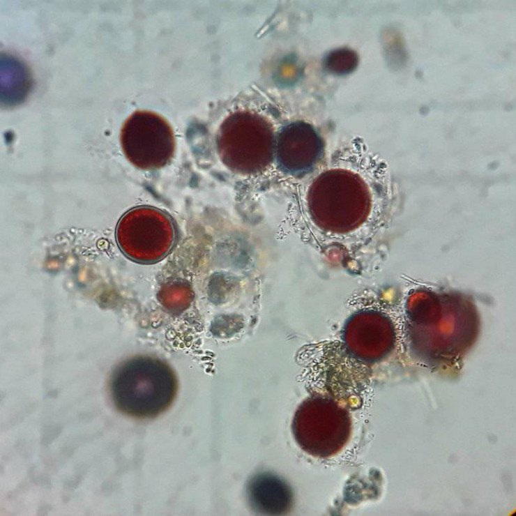 С наступлением холодов хламидомонада готовится к зимнему перерыву, и "цветение" снега прекращается.