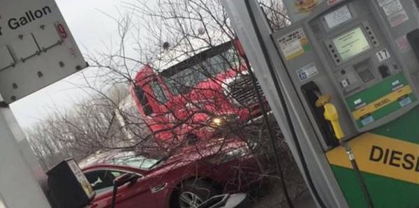 Фура, на водительском месте которой находилось животное, врезалась в дерево и припаркованную на автомобильной заправке машину. Водителей в это время не было ни в кабине пострадавшего авто, ни в грузовой машине, сообщает CBS Minnesota.