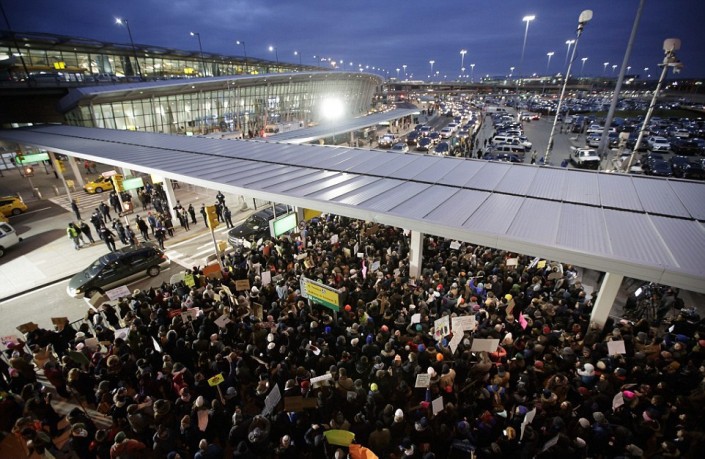 После того как 28 января американские власти начали исполнять распоряжение Трампа, в крупнейших аэропортах США начались акции протеста против указа. С утра субботы в аэропортах Нью-Йорка, Сан-Франциско, Чикаго, Сиэтла и других крупнейших городов проходят митинги в поддержку мигрантов. Люди приезжают к аэропортам, требуя признать действия президента антиконституционными. По всей стране в акциях протеста участвуют тысячи человек, сообщает Meduza.