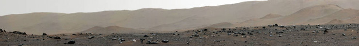 На фрагменте этой круговой панорамы хорошо виден край кратера Езеро, внутри которого и произошла высадка марсохода.