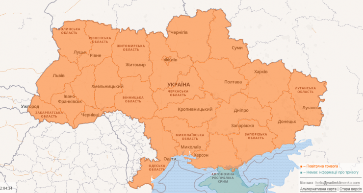 Утром сирены прозвучали в Киевской, Полтавской, Черкасской, Кировоградской, Днепропетровской, Николаевской, Житомирской, Ровенской, Хмельницкой, Черновицкой, Винницкой, Херсонской, Запорожской, Донецкой, Сумской, Харьковской, Волынской, Львовской, Закарпатской и Ивано-Франковской областях. В некоторых случаях речь идет о работе систем ПВО.