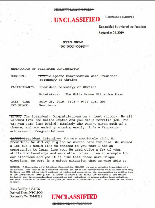 Разговор двух лидеров стал причиной крупного скандала в США. Демократ Нэнси Пелоси объявила о начале процедуры импичмента Трампа. Основанием стали предполагаемая попытка главы государства использовать власти Украины для компрометации своего главного соперника по выборам Джо Байдена, а также попытки скрыть эти действия.
