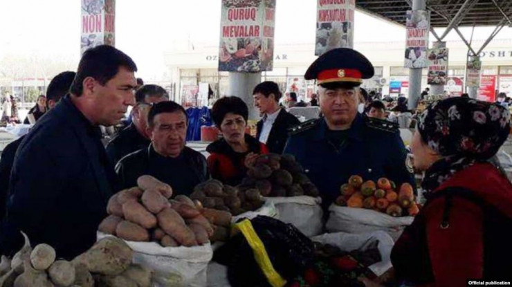 Директор базара в Даштабаде Нуман Эгамбердиев (второй слева). Фото взято с сайта пресс-службы администрации Зааминского района