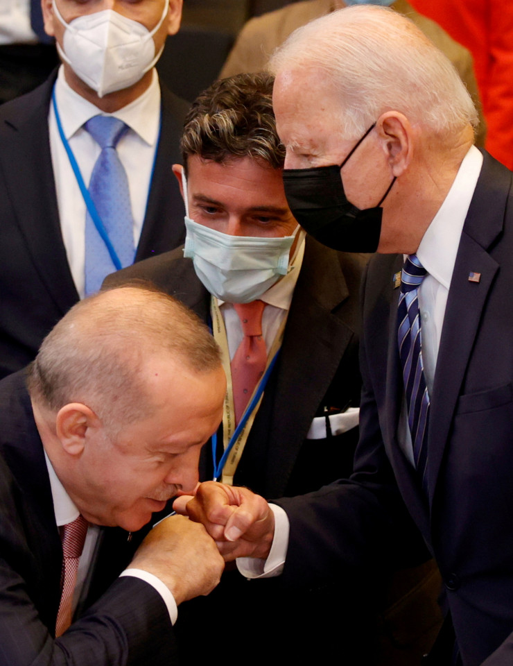 Однако больше всего раздражения в Анкаре было вызвано не указанием на отсутствие маски у Эрдогана, а попаданием на страницы западной прессы весьма неловкой позы турецкого лидера, так как фото сделано с такого ракурса, что возникает впечатление, будто Эрдоган, согнувшись пытается поцеловать кулак Байдена.