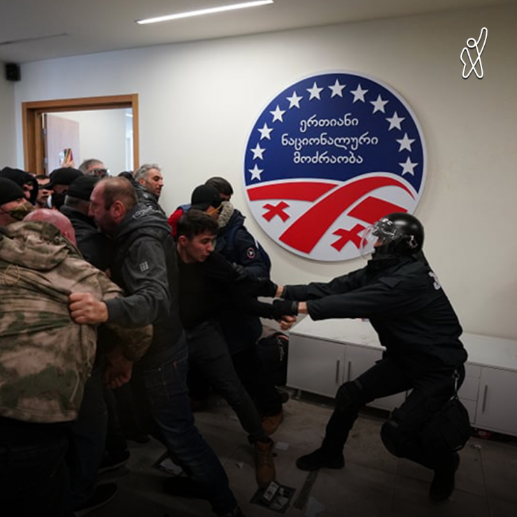 Во время задержания в офисе находились сторонники партии Саакашвили.