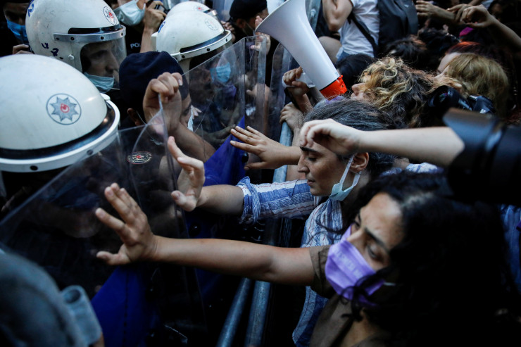 Решение вызвало критику, и тысячи людей вышли на улицы крупнейших городов Турции, чтобы выразить протест против выхода страны из международного договора о борьбе с насилием в отношении женщин.