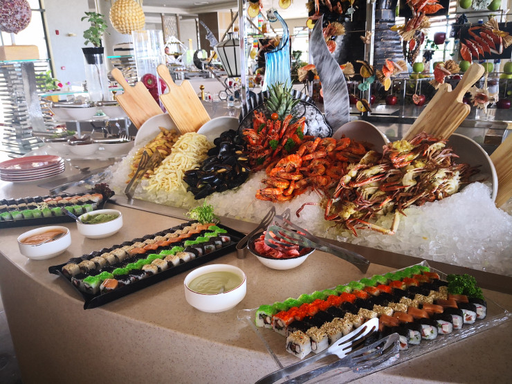 Но в сервисе "шведского стола" теперь задействовано больше персонала: в каждой зоне с блюдами туристов обслуживает отдельный сотрудник, что позволяет соблюдать дистанцию и санитарные нормы. Гостей Turquoise порадует великолепный вид из ресторана на море в сопровождении расслабляющего музыкального фона.