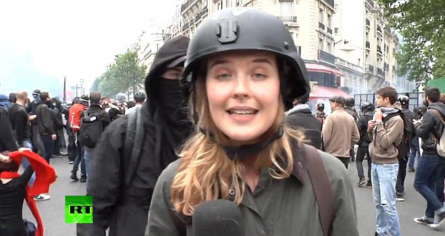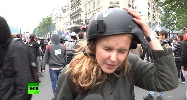 "Участники акции протеста в Париже против трудовой реформы пытались помешать работе корреспондента RT Анны Барановой. Один из митингующих подошел к журналистке во время прямого включения и ударил по шлему. По данным профсоюзов, на улицы французской столицы вышло более 50 тысяч человек. В ходе демонстраций произошли стычки между протестующими и сотрудниками правоохранительных органов", - говорится в описании к ролику.