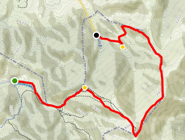 Начало маршрута полностью совпадает с маршрутом 140 "Бутаковский водопад". Надо пройти до северной оконечности поляны Мечта туриста (тропа, ведущая на водопад на ее южном конце). Перейдя Бутаковку вброд, необходимо найти отчетливую тропу, уходящую по поперечному ущелью на восток. Тропа идет вдоль ручья, впадающего в Бутаковку, переходит на правый (орографически) склон, петляя по крутой осыпи. Наконец, выравнивается, становится пологой, опять выходит к ручью. Перейдя ручей, нужно преодолеть небольшую крутую осыпь. Тропа хорошо просматривается и еще раз пересекает ручей. Склоны ущелья раздвигаются, и перед вами огромная поляна. На восточном ее конце, на склоне, хорошо виден крутой овраг и тропа. Это "тропа дураков". Склон очень крутой, и кто идет по этой тропе, затрачивает ненужные усилия. Дело в том, что вдоль склона направо идет нормальная тропа, которая серпантином легко выводит вас на перевал Лесной, 2000 м ( 43.18090,77.11445), лежащий на одном из западных гребней Котурбулакского ущелья.