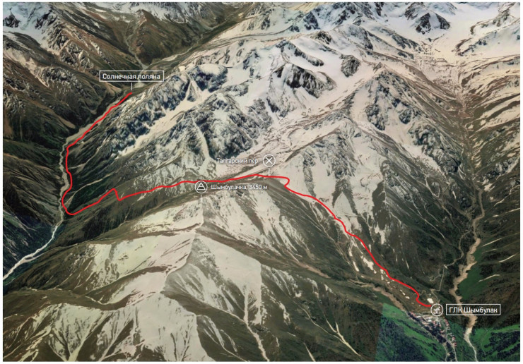 Описание: Горнолыжный комплекс (ГЛК) "Шымбулак" - перевал Малый Талгарский - Солнечная поляна